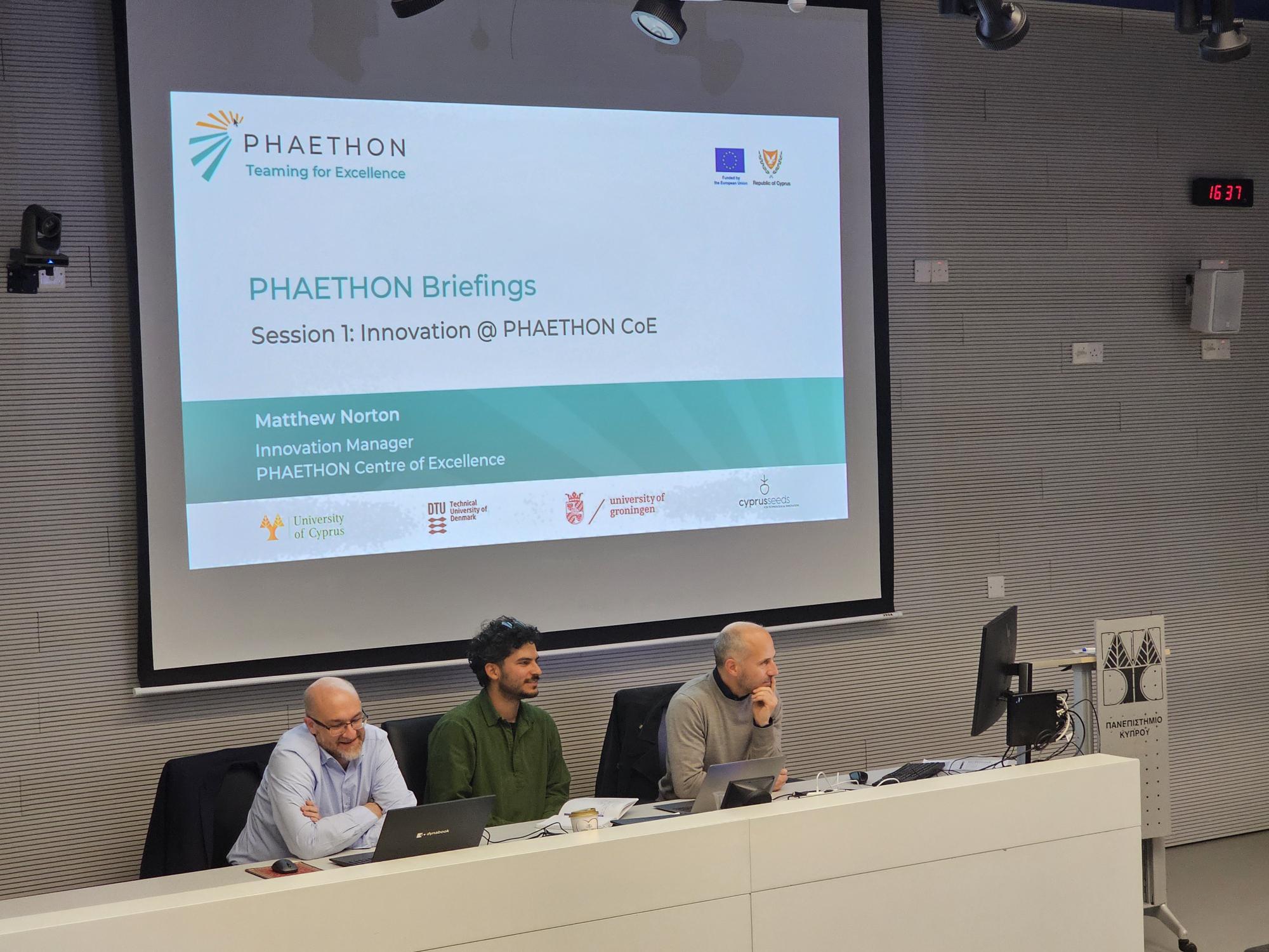 PHAETHON CoE is being established through the PHAETHON Teaming for Excellence Horizon Europe project, signalling in parallel the evolution and upgrade of the FOSS Research Centre into a world-class Centre of Excellence. The University of Cyprus serves as the Coordinator of project PHAETHON. The Consortium also comprises two leading European institutions in energy transition and sustainability: the Technical University of Denmark, and the University of Groningen, as well as a local innovation partner, Cyprus Seeds.